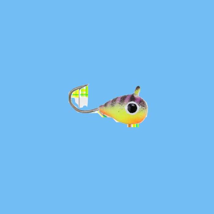 Same jig but with a bigger, wider-gapped hook. When the Drop pounded onto the scene, the ice fishing world fell in love with it. You already know the tungsten craftsmanship, killer colors, and angled hook orientation for a better hooking percentage. Sometimes, the hook itself can be slightly on the small side when you want to bulk up with waxies, maggots, or a Maki Plastic. We needed Drop jigs with bigger hooks, so we made them.