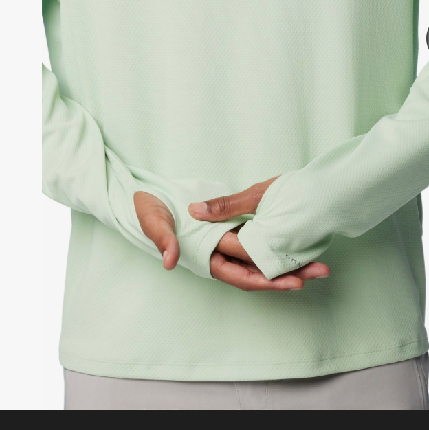 - Thumbholes on the cuffs help keep sleeves in place and add coverage over your hand