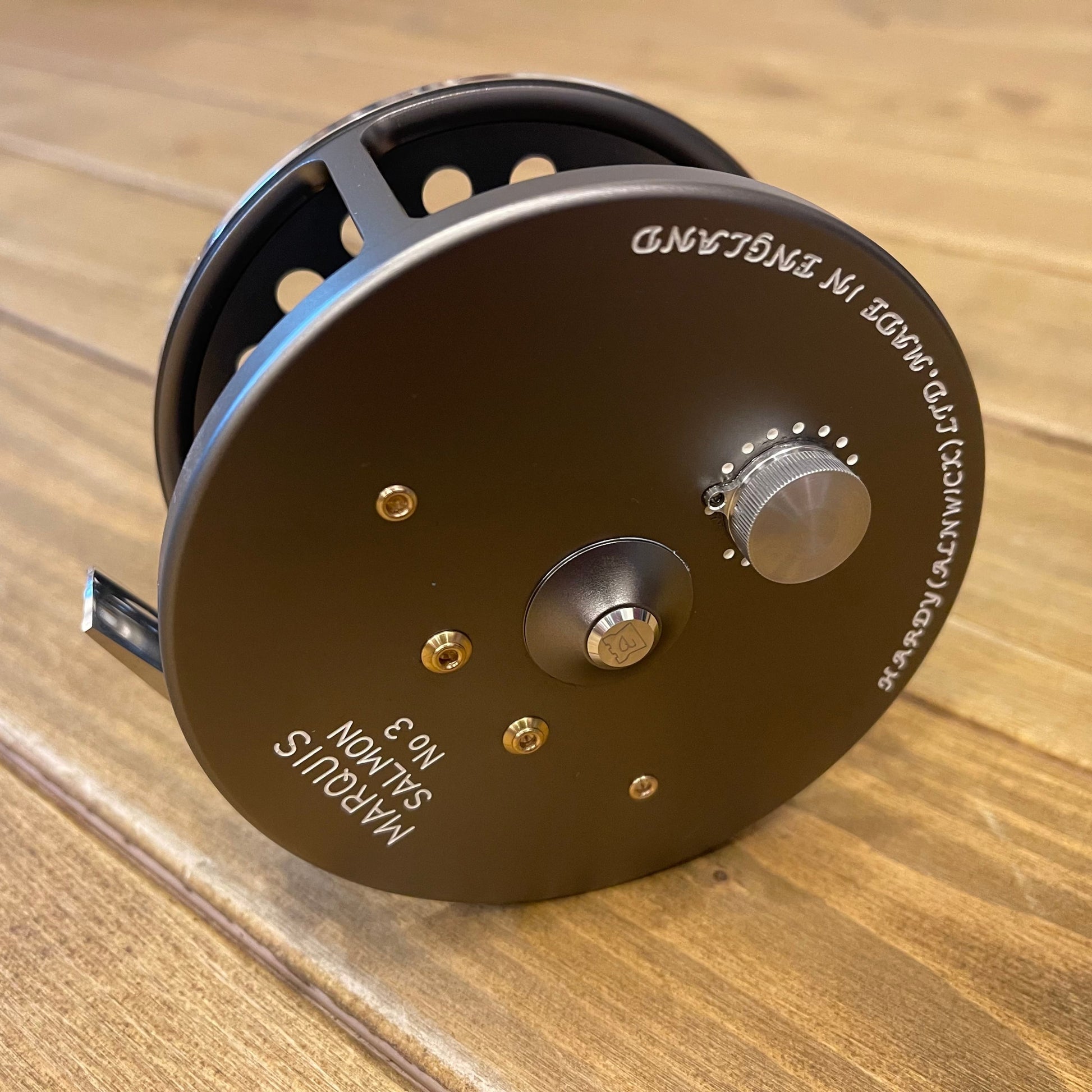 A re-modeled classic Hardy fly reel. The Hardy Marquis was a main stay of the Hardy line for many years. This new edition features numerous improvements to the original, including subtle updating of the classic style with an indented regulator button, increased porting, and improved regulation range.