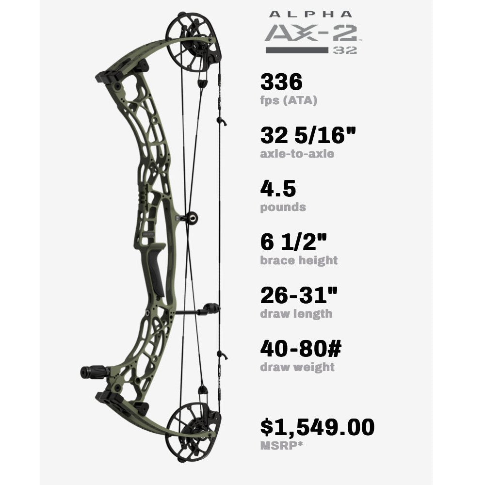 Hoyt has taken the popularity and performance of the Alpha X and pushed it even further. Meet the Hoyt AX-2, Hoyt’s aluminum flagship hunting bow for 2025. With a newly engineered riser, refined limbs and limb pockets, and the cutting-edge HBX Gen 4 cam system, the AX-2 is fast, lightweight, accurate, and rock-solid stable.