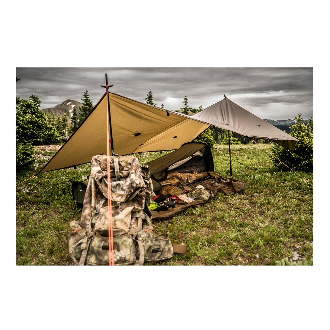 Multiple pitch options: flat tarp, lean-to, or trekking-pole supported shelter (includes 32 ft. of cordage)