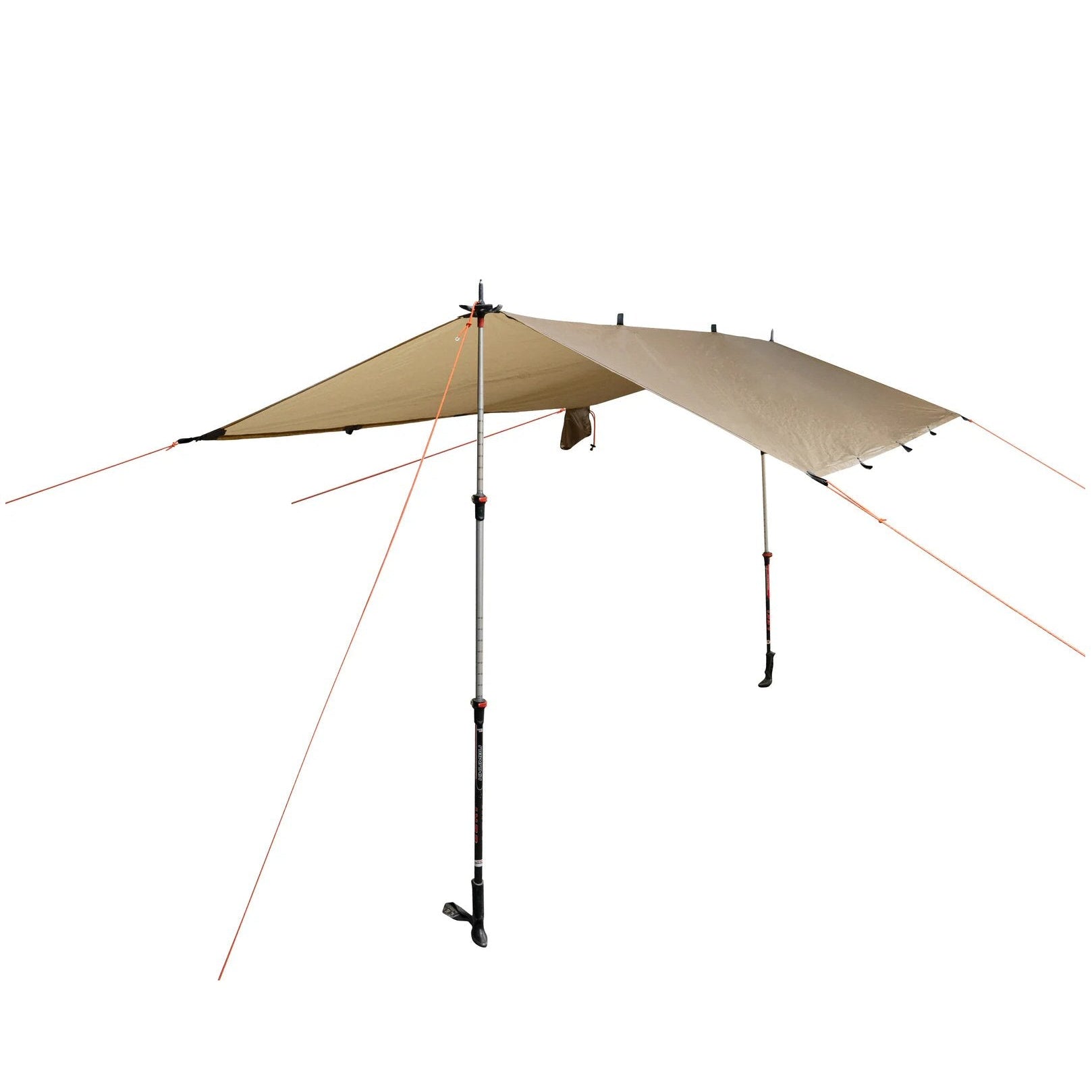 · Configurable as a flat tarp, lean-to, or trekking-pole shelter