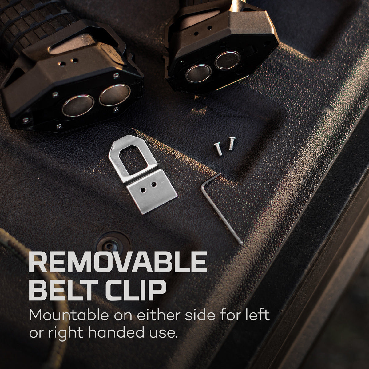 The powerful LUXTREME® SL25R is rechargeable, waterproof (IP67), and features a white or red C•O•B flood light and 1/4 mile light beam spot light. The ruggedly designed SL25R is also equipped with several hands-free options: a powerful magnetic base, 1/4-20 tripod mount, and a reversible/removable steel clip.
