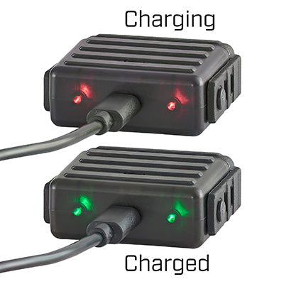- Includes 2-bay charge case, USB-C cord, and (3) batteries (enough for 1 hour of light/laser use)